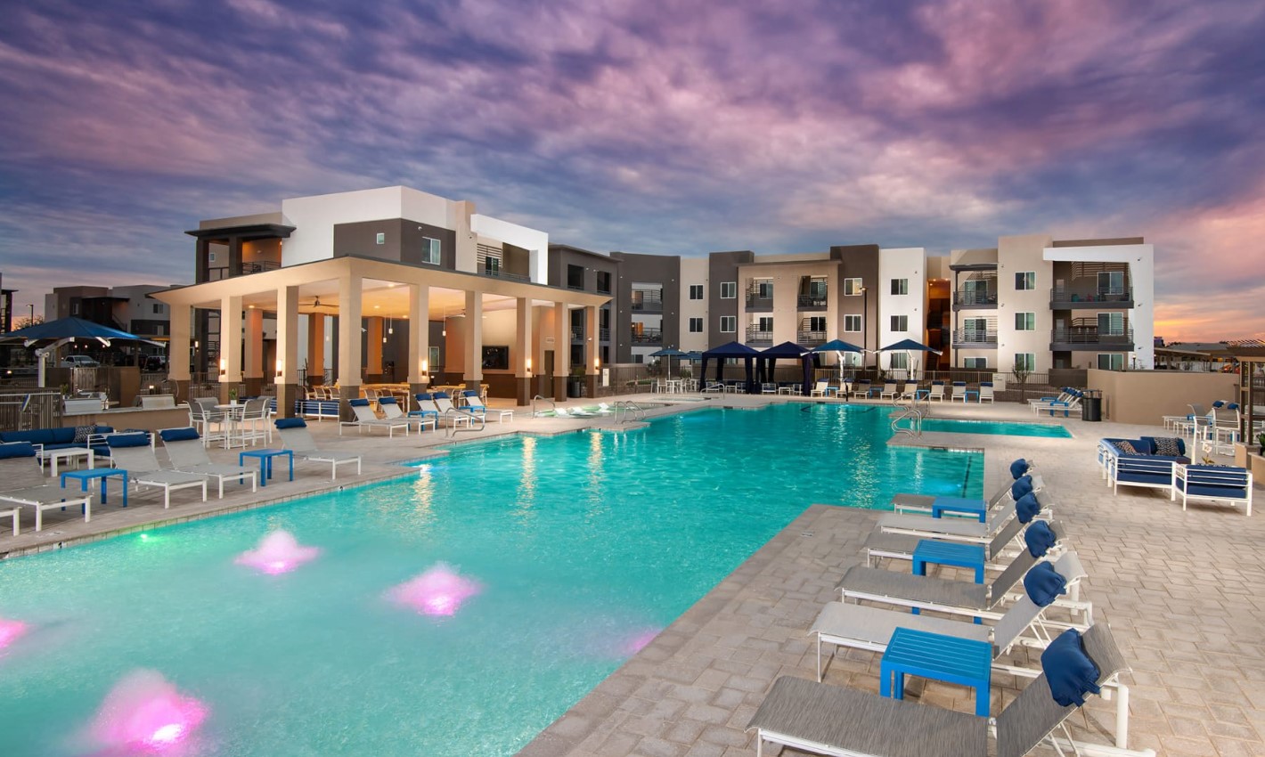 LOOK & LEASE **4 WEEKS FREE* SPACIOUS 721 SQ FT 1 BEDROOM, 1 BATHROOM FOR $1275 BASE RENT ON A 12 MONTH LEASE INCLUDING WASHER/DRYER IN THE UNIT. DONT MISS THIS OPPORTUNITY. ENJOY THE SPARKLING POOLS, SPA, GAS GRILLS, AND STATE OF THE ART FITNESS CENTER. CALL OR TEXT JUDY ANN AT 623-565-3118 AT YOUR EARLIEST CONVENIENCE AT VALLEY KING PROPERTIES. **SAVE TIME, STRESS, AND GAS** **Prices and Availability Subject to Change**