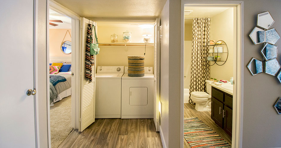 Air Conditioning and Heating Preinstalled Wi-Fi with Cox Spacious Wardrobe Closets Private Extended Patio 1st Floor/Balcony Pool View* Hardwood-Style Flooring* Full Appliance Package* Courtyard View Modern Light Fixtures & Hardware Newly Remodeled Interiors* Spacious 1- and 2-Bedroom Floor Plans Washer and Dryer