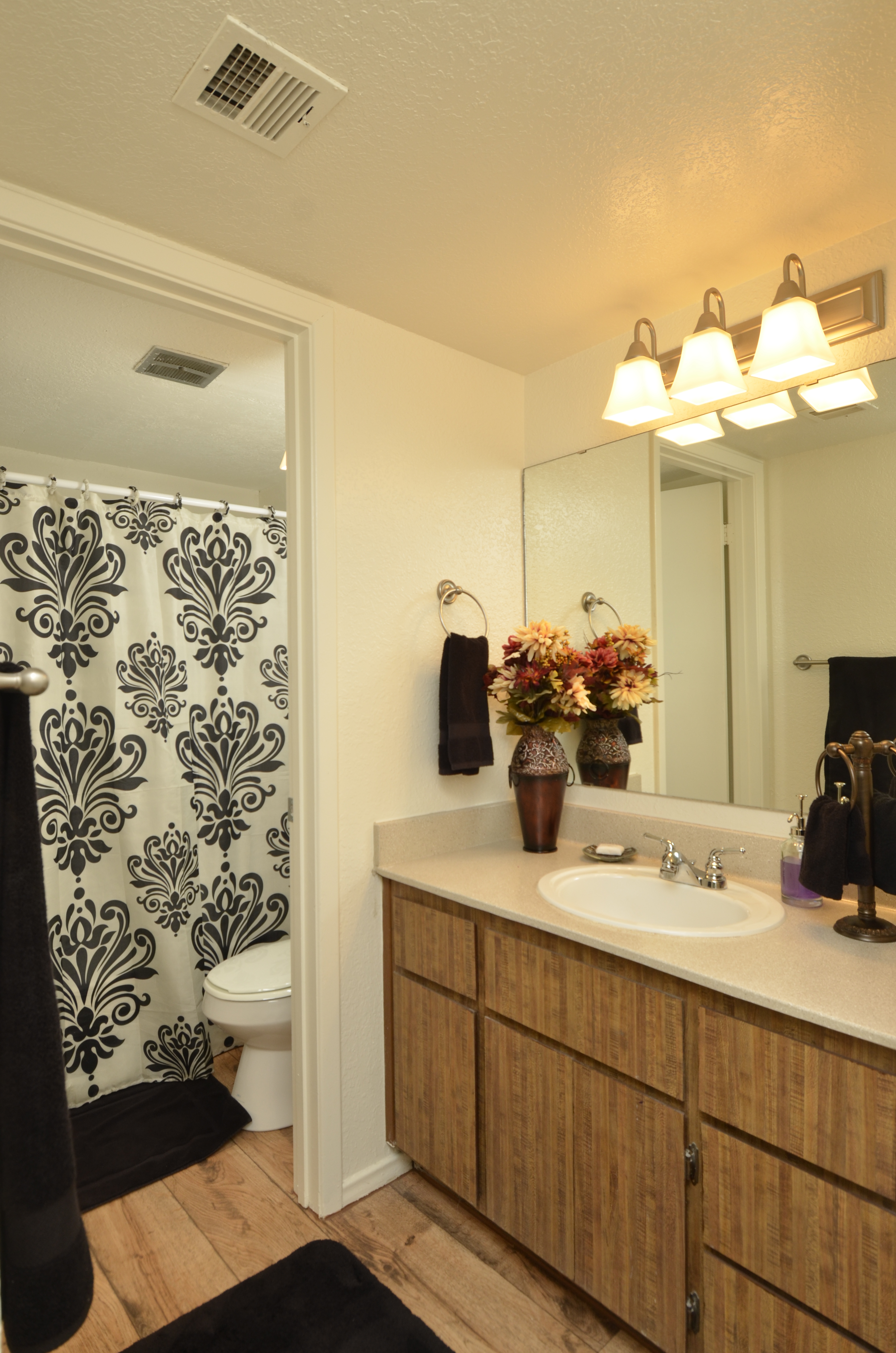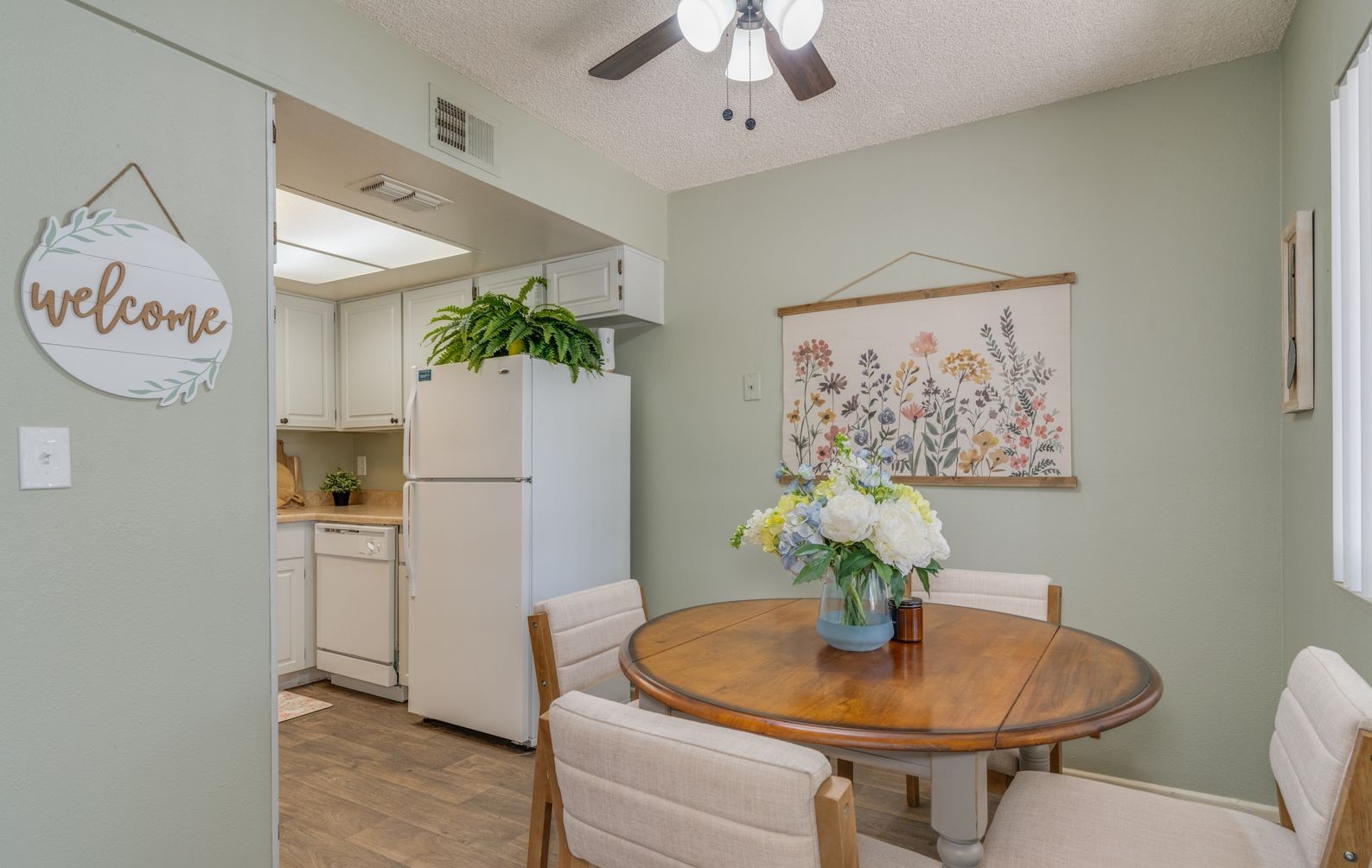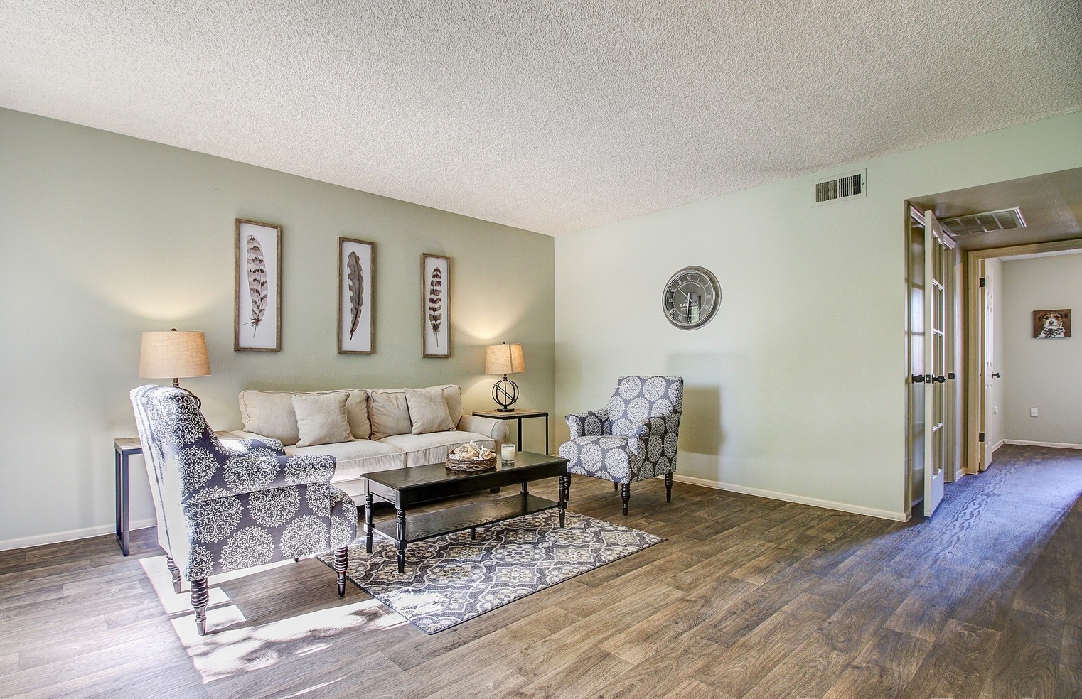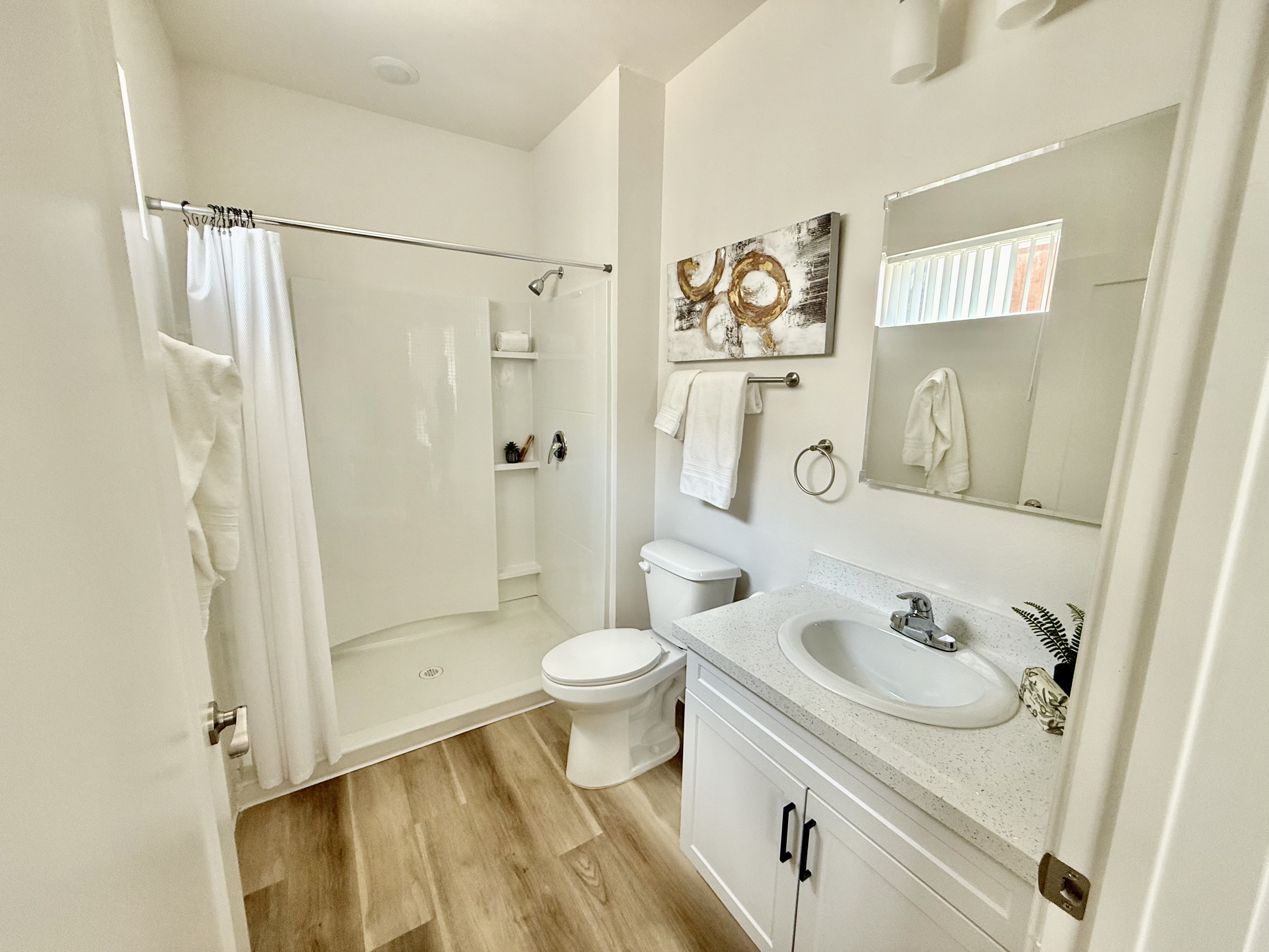 Credit friendly! Move in ready! Wood Style Flooring Carpeted Living Areas Walk In Closets Ceiling Fans* Patios Individual Climate Control Kitchen Appliance Package Double Vanity Sinks* Window Coverings Cable Ready Pre-Installed Wi-Fi with 1st Month Free from Cox