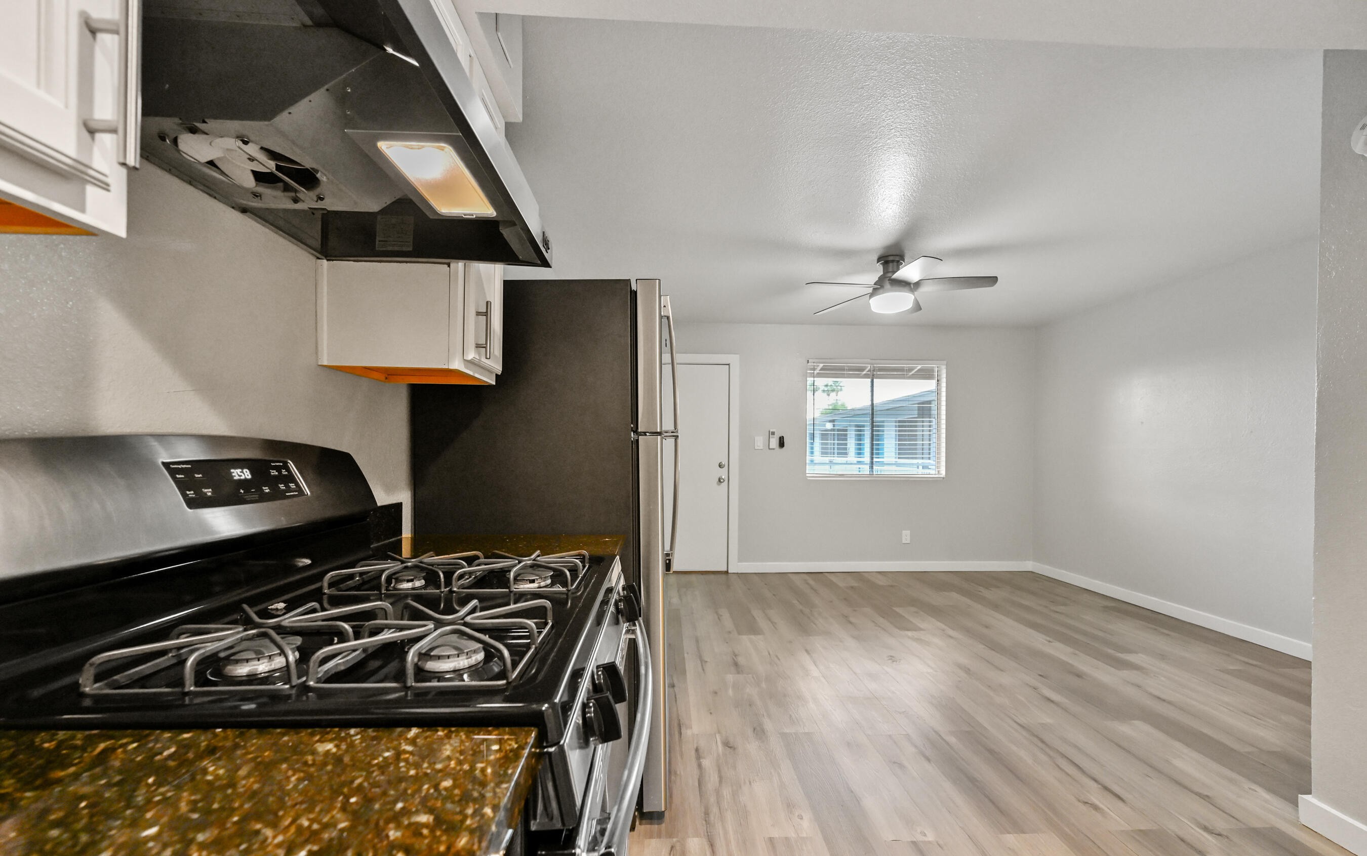 one and two bedrooms gated community pool spa fitness center single level private backyard washer and dryer smart home system